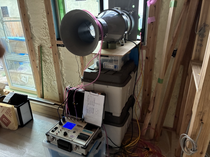 先月に引きつづき、エステート工房様のT様邸の気密測定にお伺い致しました。